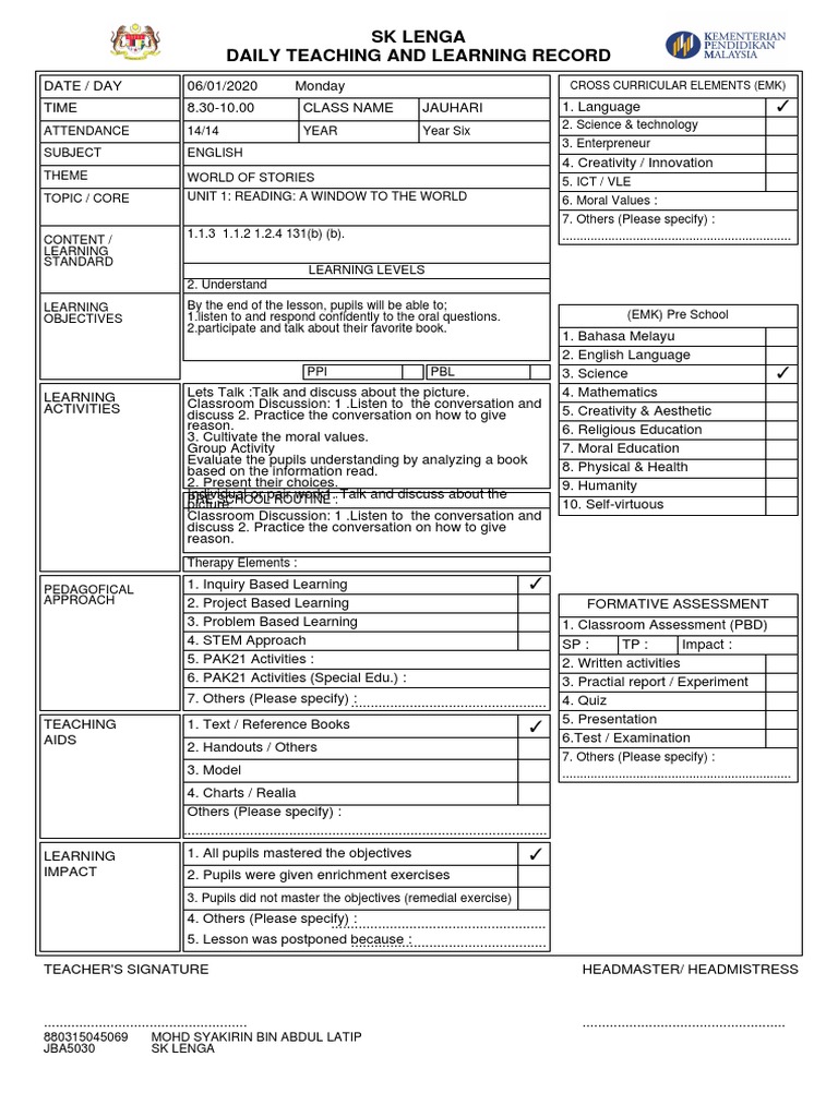 Sis mohon share ye. Pengajaran yang telah disusun dalam Rancangan Pengajaran Harian RPH membantu guru menyampaikan isi kandungan pelajaran dengan mudah. 4 5 KSSR Semakan RPH Tahun 6 KSSR Semakan terbaru.